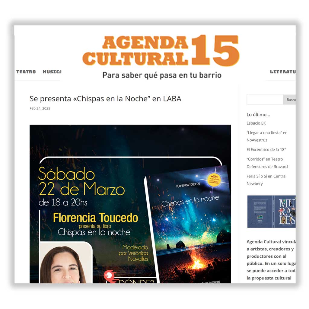 Presentaciones Se presenta Chispas en la Noche en LABA abril 8, 2025 Florencia Toucedo es docente y periodista argentina...